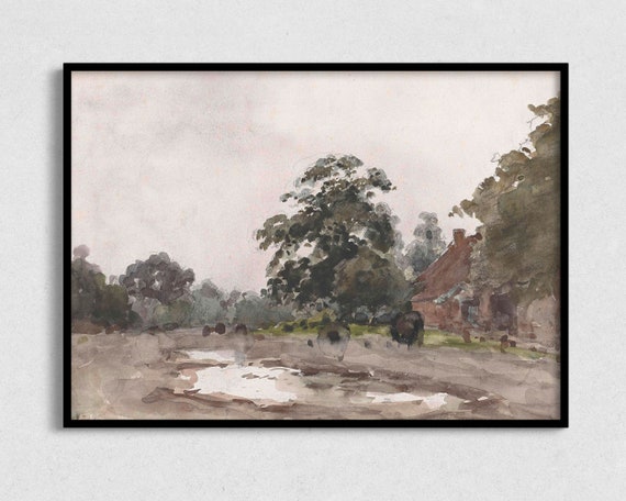 Vintage Muted Landscape Art Print Above Bed Painting Etsy
